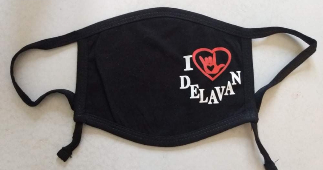 Show your Delavan pride and protect yourself and others with this black fabric mask with the “I Love Delavan” logo. $1 shipping will be added in the cart.
